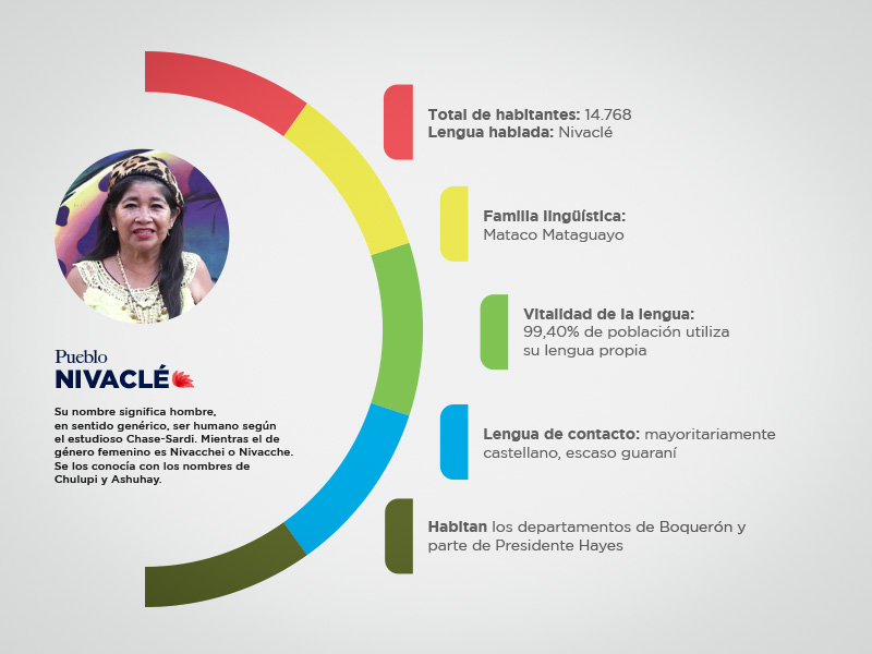 Enlhet Norte, Enxet Sur, Sanapaná, Angaité, Guaná), Mataco Mataguayo (Nivaclé, Maká, Manjui), Zamuco (Ayoreo, Ybytoso, Tomárãho) y