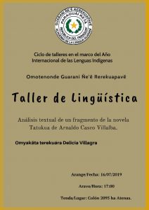 « Todos los Eventos Este evento ha pasado. Taller de Lingüística 16/07/2019--17:00 - 19:00 « Taller de Lingüística Taller de Lingüística » Añadir al calendario Google Calendar iCalendar Outlook 365 Outlook Live Detalles Fecha: 16/07/2019 Hora: 17:00 - 19:00 Organizador Academia de la Lengua Guarani Local Academia de la Lengua Guaraní Colon 2095 y Atenas Paraguay + Google Map